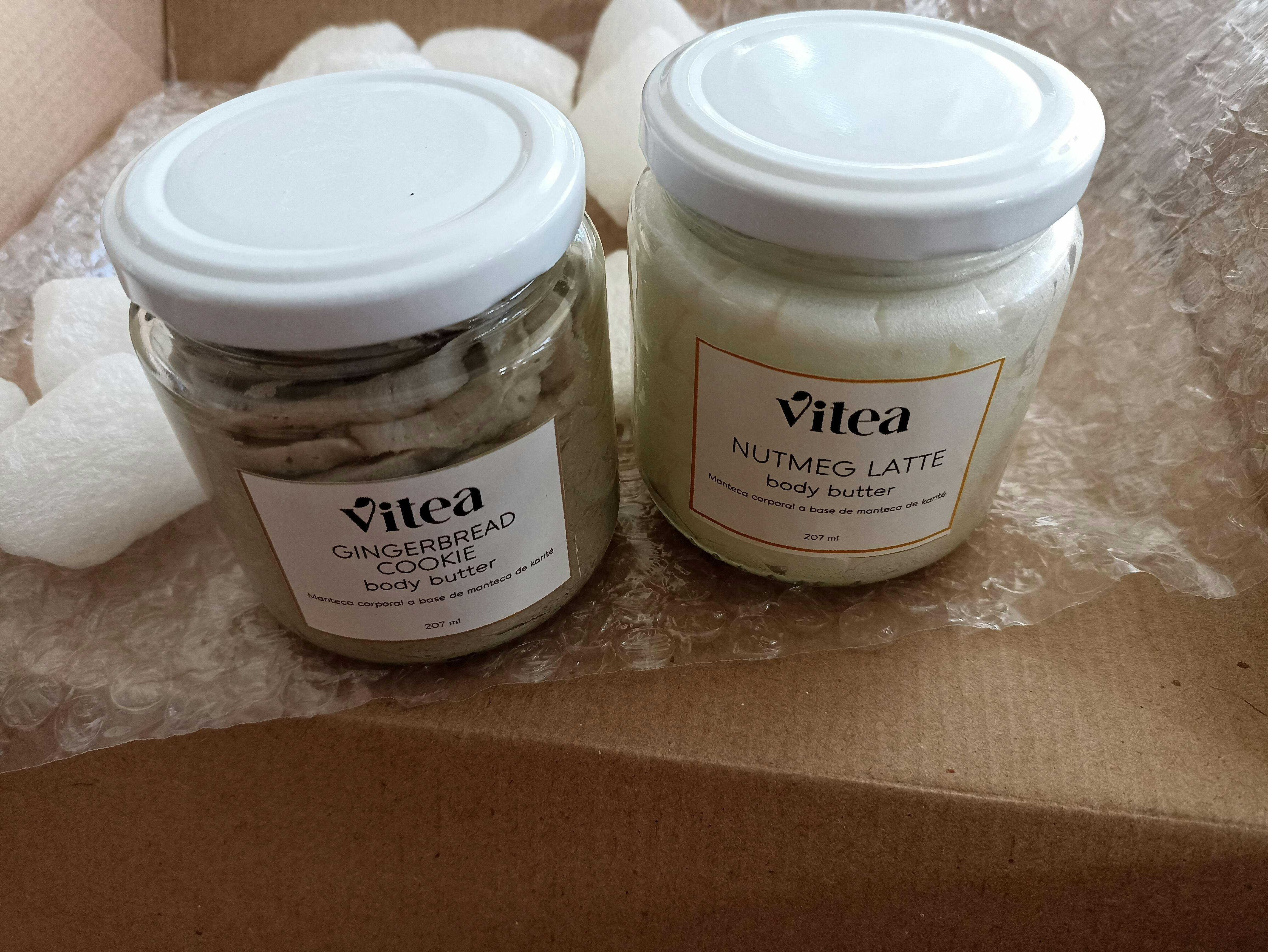 CONTENIDO: Una Body Butter Nutmeg Latte de 207 ml & Una Body Butter Gingerbread Cookie 207 ml.